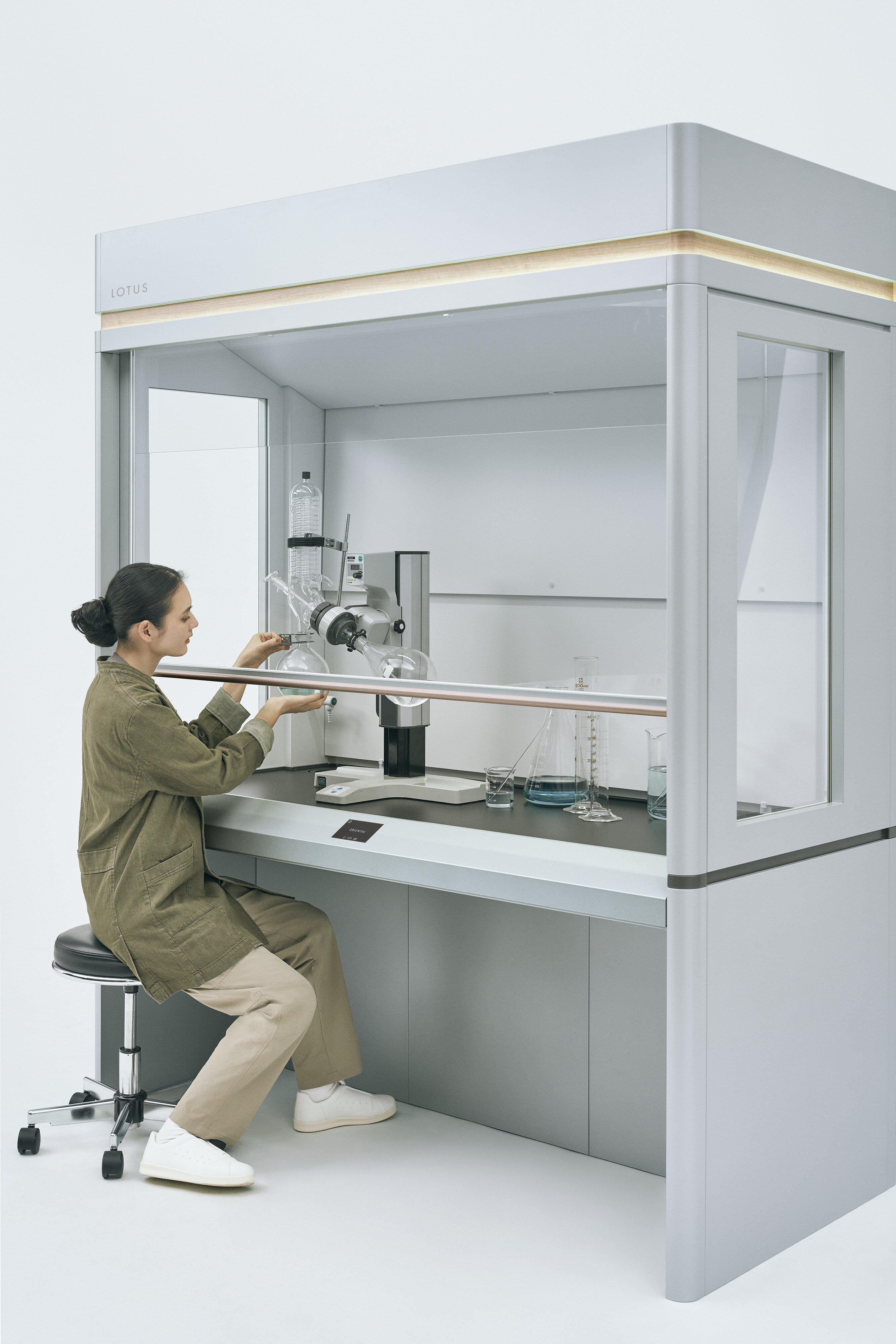 インダストリアルなかっこよさと、人への配慮から生まれるあたたかな有機性、そして安心感。それらのコントラストが魅力となった「LOTUS」は、ラボでの実験時間をこれまでとは少し違うものに変えてくれるかもしれません。