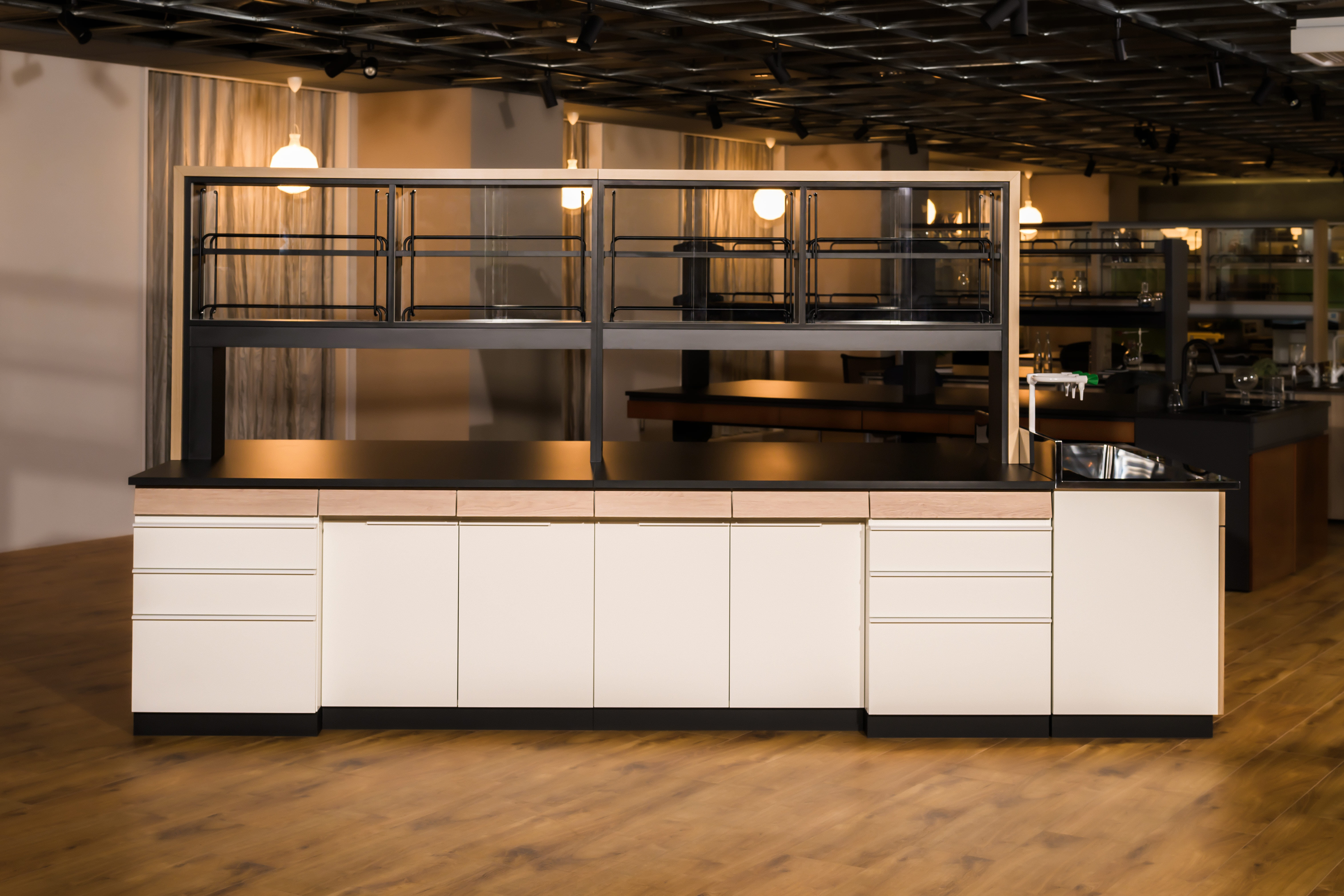 白色蛍光灯が灯る空間に単色の実験台がバーッと並ぶと無機質な空間になりますし、逆に木目の実験台が並べば優しい雰囲気のラボになる。だから実験台をデザインするときは、実験台のことだけを考えるのではなく、どんなラボ空間を目指すのかという全体観にもとづいてデザイン、色、素材を考えていきます。